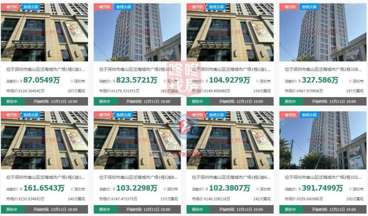 目前,位于南山区的南山区泛海城市广场已有21套房产在京东拍卖平台挂拍,开拍时间为2023年12月11日10:00。