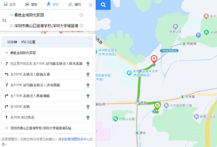 项目周边有3个地铁站,分别是大学城、茶光、西丽,但距离都不算很近。根据地图测算,从项目出发步行距离在730米至1公里范围内。