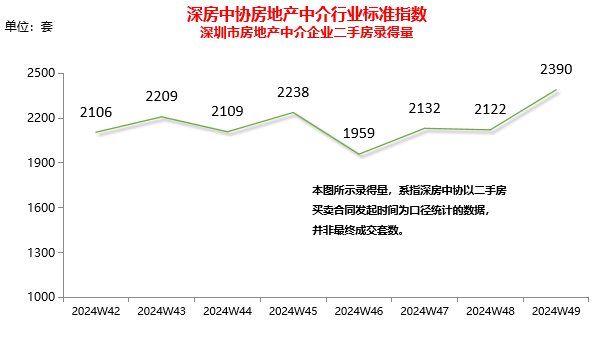 经深房中协统计,2024年第49周(12月2日—12月8日)全市二手房(含自助)录得2,390套,环比增长12.6%。二手房单周录得量创下近200周以来的单周新高,随着深圳11月19日发布的“关于取消普通住房…