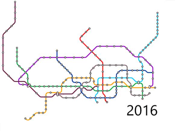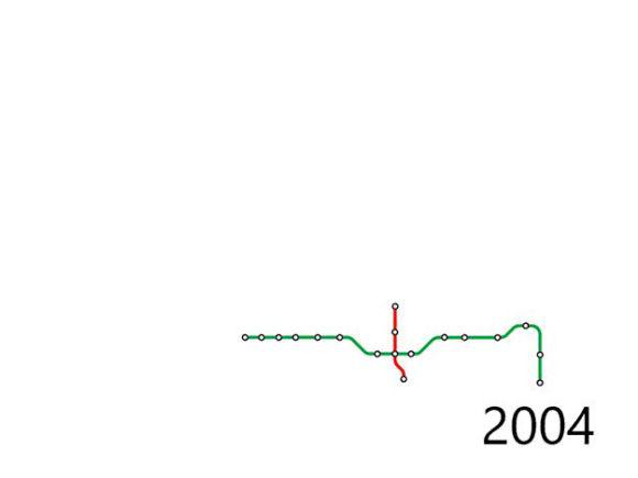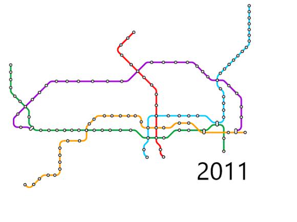 二期工程从2006年开始,2011年大运会之前通车。从最初的十字架,演变为由5条地铁线,可相互交叉换乘的轨道交通网络。