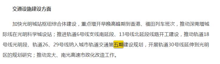 比如光明区,在几天前公告的科学城发展《若干意见》中提到,推动18、26、29纳入五期建设规划。