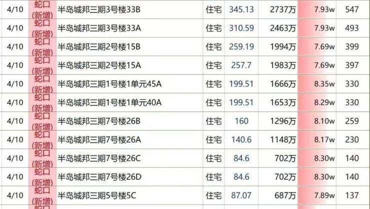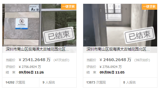 其中半岛城邦三期有将近11套,将于4月10日集中拍卖,起拍价在500-2400多万之间。