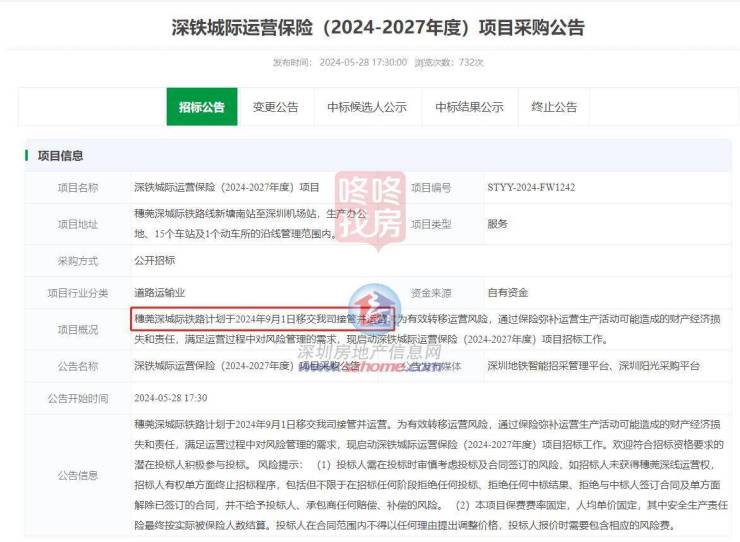 5月28日,深铁发布城际运营保险(2024-2027年度)项目采购公告。