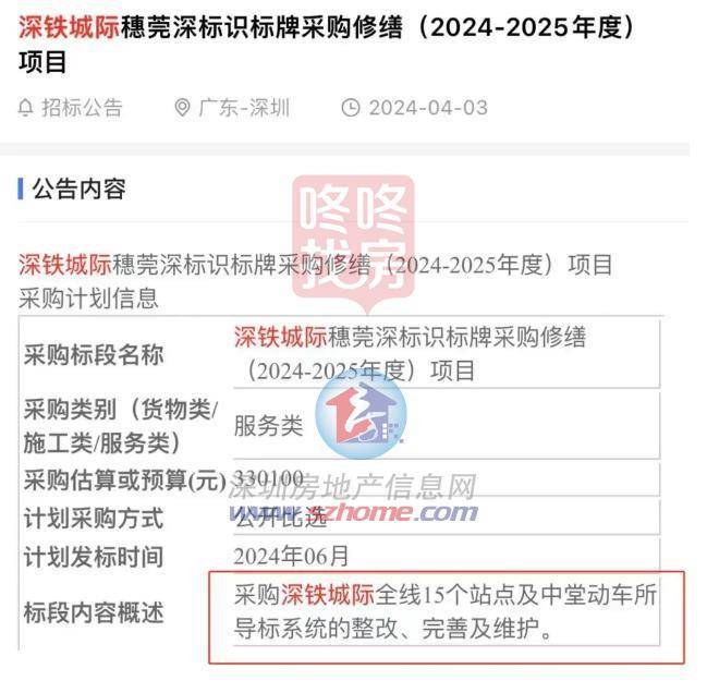 今年4月3日,深铁发布了穗莞深标识牌采购修缮项目招标。显示采购深铁城际全线15个站点及中堂动车所导标系统的整改、完善及维护。