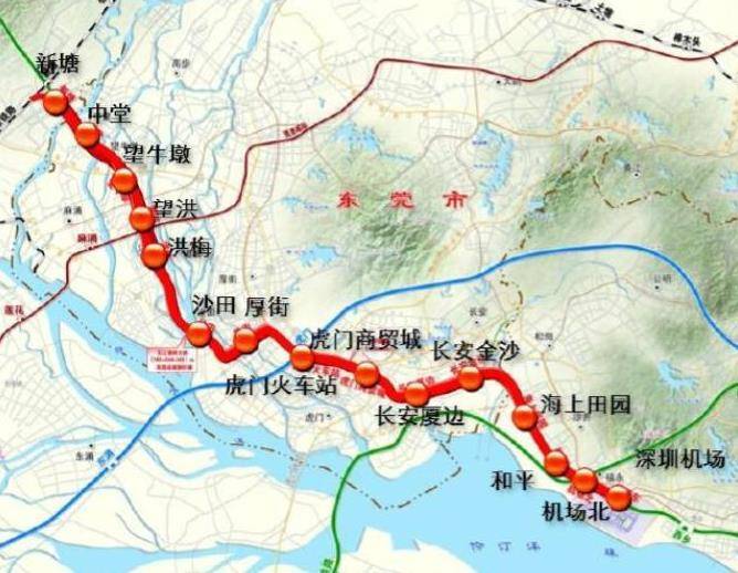 深圳地铁将接管穗莞深城际中堂至深圳机场段,一共15个站,包括:中堂站、望牛墩站、东莞西站、洪梅站、东莞港站、厚街站、虎门北站、虎门东站、长安站、沙进西站、福海西站、深圳机场北站、深圳机场站,前海至皇岗口岸段在建中。