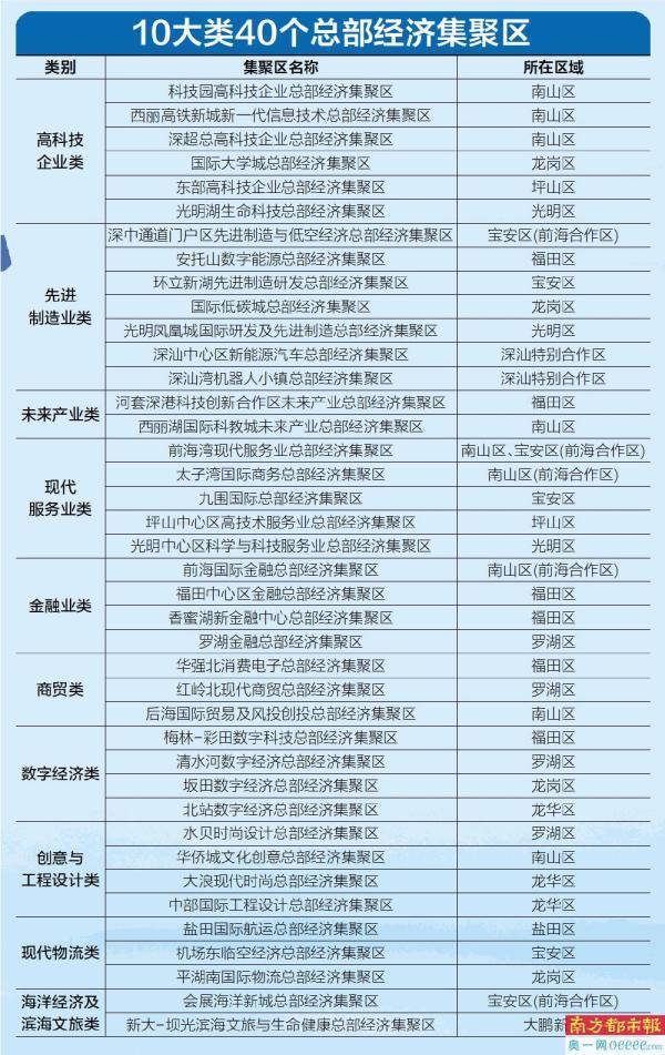 《意见》还提到,加快深圳湾超级总部基地、后海、前海湾、会展海洋新城等10大类40个总部经济集聚区建设,进一步完善集聚区配套设施,构建功能定位清晰、产业特色鲜明的总部经济发展空间格局。鼓励楼宇运营主体加大总部企业招引力度,提供优质配套服务,打造一批集聚效应明显、效益贡献突出的总部楼宇。