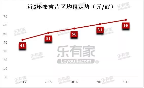 据乐有家研究中心数据显示,近5年来,布吉片区每年租金涨幅均比较稳定,2015年-2018年,每年的年度租金涨幅均保持在0.8%左右,至2018年,该片区均租一直保持在66元/㎡左右,这意味着租房人群能以2000元左右的价格租到一套装修较好的30㎡的小区房,另外布吉片区离市中心较近,交通十分便利,也有多个诸如华润万象汇、沃尔玛、万科红的大型商超,在这里租住是上班族的不二之选。