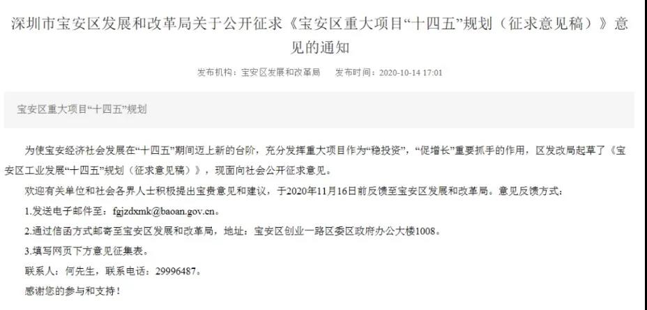 2020年12月31日,深圳发布了“十四五规划建议”,其中“关于各区的定位和任务”明确提到“优化西部向湾格局”,回过头看2020年10月底,宝安区发展和改革局发布的《宝安区重大项目“十四五”规划(征求意见稿)》(以下简称意见稿)。这份意见稿释放出许多重磅利好消息,宝安作为优化西部向湾格局的首要“战场”,未来值得期待!