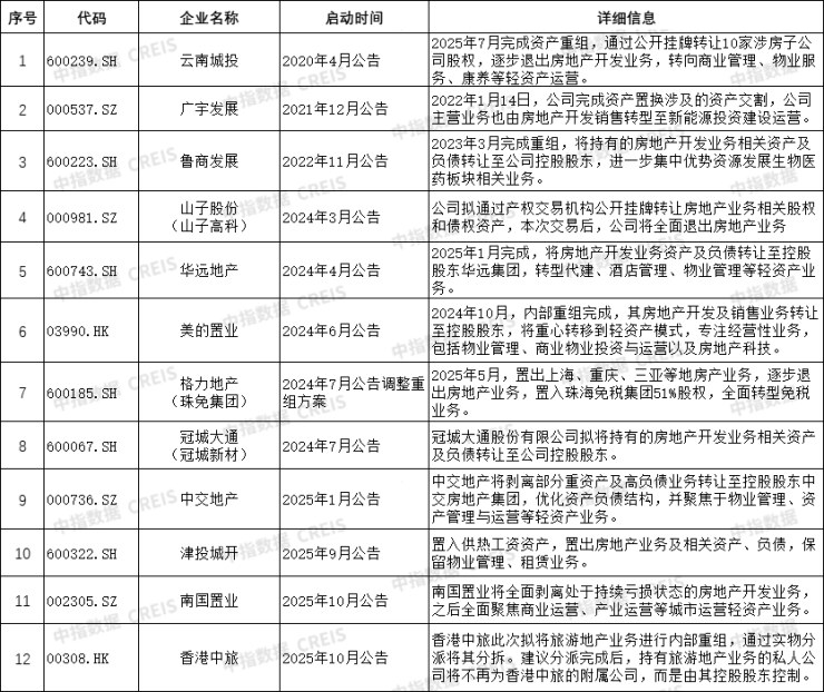 中指院统计显示,2020年至今共有12家企业退出了房地产业务,或将开发业务剥离上市公司体系内,保留相关轻资产业务,或彻底调转船头转向全新业务,不再从事房地产相关业务。