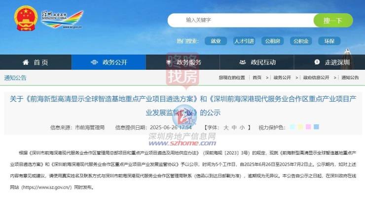 日前,《前海新型高清显示全球智造基地重点产业项目遴选方案》和《深圳前海深港现代服务业合作区重点产业项目产业发展监管协议》对外公示。