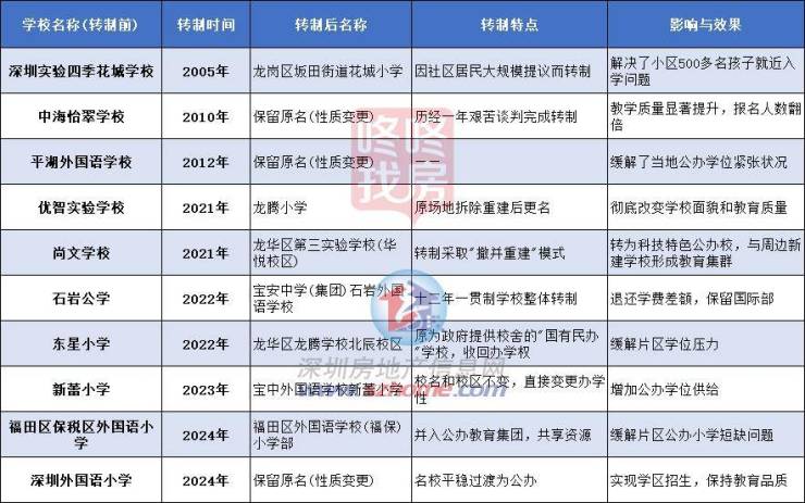 表:深圳历年部分民办转公办学校案例