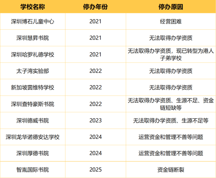 据不完全统计,自2021年至今,深圳已有10所国际学校停办。