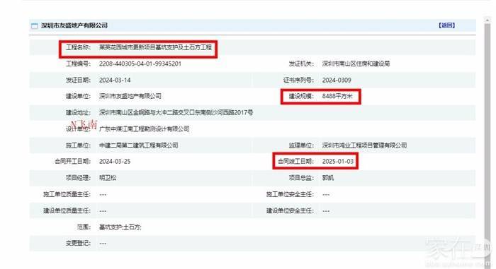 根据建设许可,项目建设规划8488平方米,发证日期为3月14日,明年1月份竣工。建设单位为深圳市友盛地产有限公司,深圳湾知名豪宅红树别院开发商。