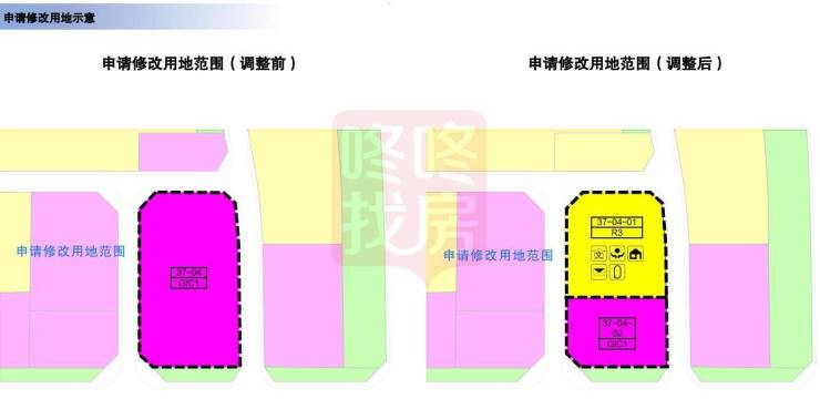 ● 37-04地块分成两小块,其中一块用地性质变为三类居住用地。
