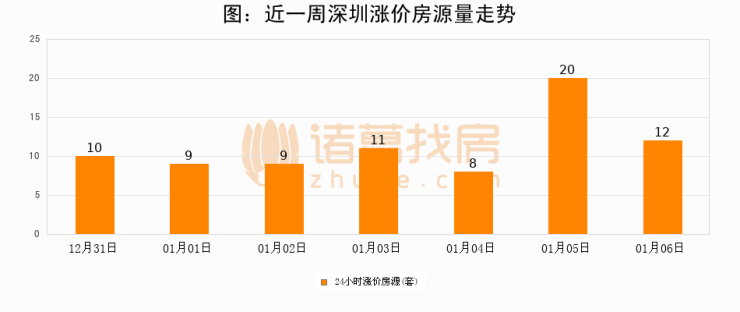 根据诸葛找房数据显示,深圳24小时涨价房源量为12套,较01月05日减少8套,环比下降40%。与此同时,涨价房源占比小幅回落,对于购房者来说是一个入市窗口期,购房者可抓住时机入市。