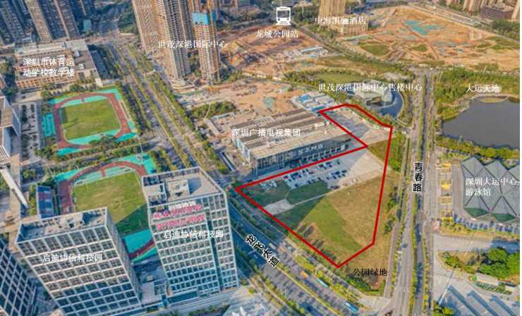 即将出让的G01045-0200宗地位于龙岗龙飞大道与青春路交汇处东北角,深圳广播电影 电视集团制作中心东南面,一路之隔是大运体育中心和大运天地商业,地理位置十分优越。