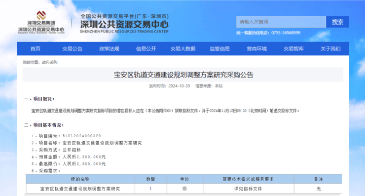 而25号线二期西延线,官方也有表态会积极做好前期规划研究工作,并且在去年10月份宝安发布的轨道交通建设规划调整方案研究的采购公告中,也有该线路身影。