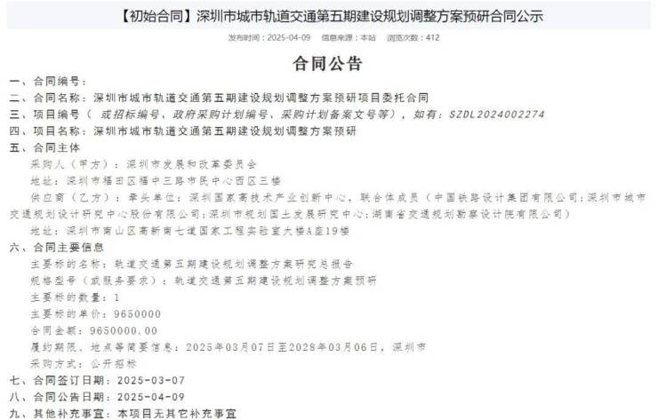 去年轨道五期调整方案预研陆续开展了意向公开、招标、中标等前期工作。
