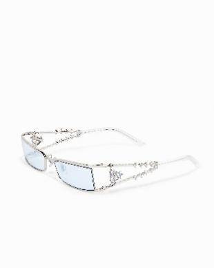 GENTLE MONSTER 2025 JEWELRY COLLECTION太阳镜。银色金属方形太阳镜,灵感源自于珠宝艺术。