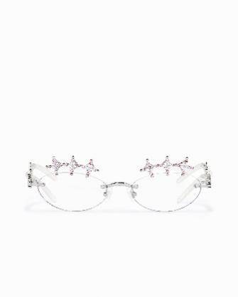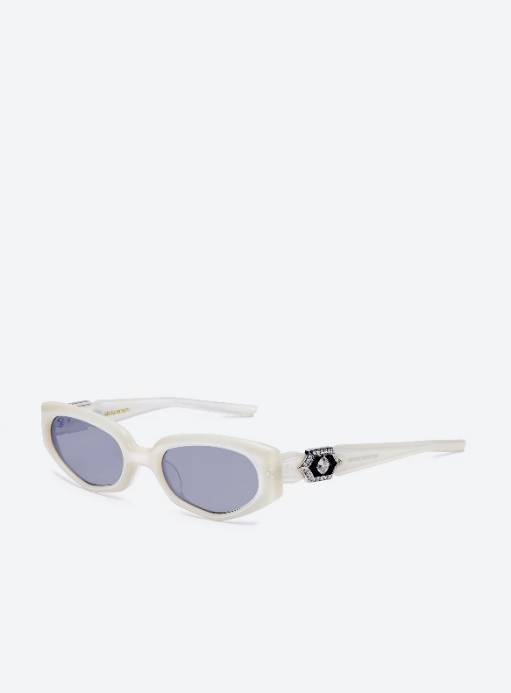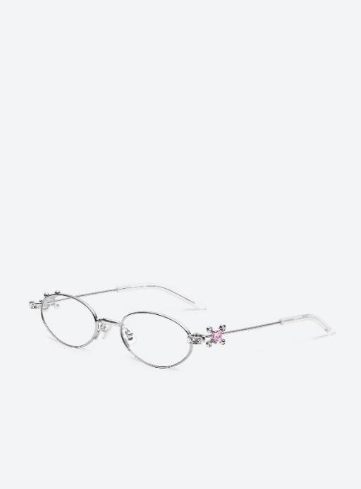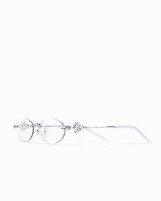 GENTLE MONSTER 2025 JEWELRY COLLECTION 太阳镜。银色金属椭圆形太阳镜,灵感源自于珠宝艺术。