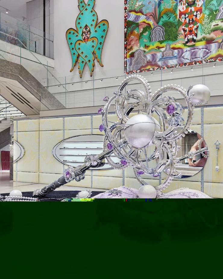 踏入空间,仿若置身巨大的珠宝盒之中,超现实主义的氛围将现实与梦境的边界逐渐消融。魔法权杖矗立中央,珠宝散落四周。空间以独特的感官体验,再次呈现出珠宝与产品相结合的先锋美学。