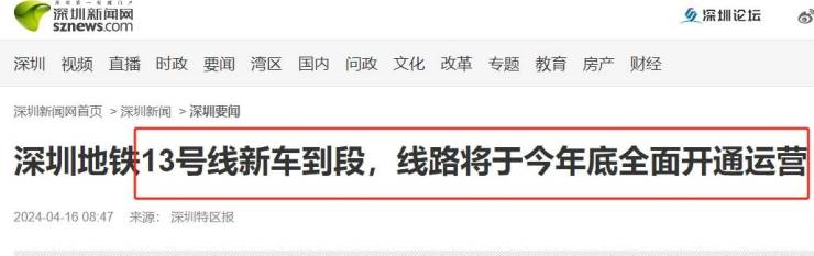 13号线通车时间,有了明确时间点!据@深圳特区报4月16日报道显示,13号线线路将于今年底全面开通运营!