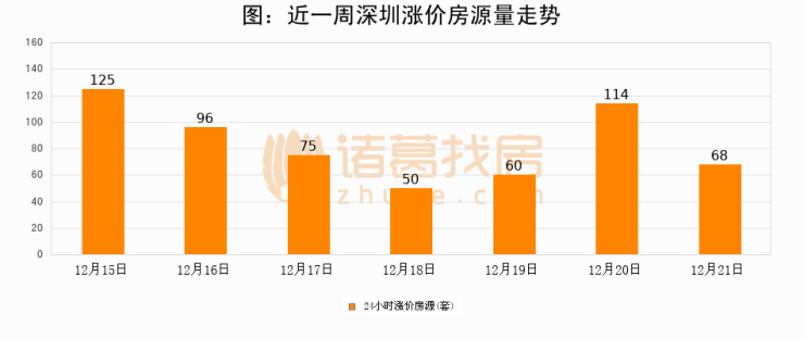 根据诸葛找房数据显示,深圳24小时涨价房源量为68套,较12月20日减少46套,环比下降40.4%。与此同时,涨价房源占比小幅回落,对于购房者来说是一个入市窗口期,购房者可抓住时机入市。
