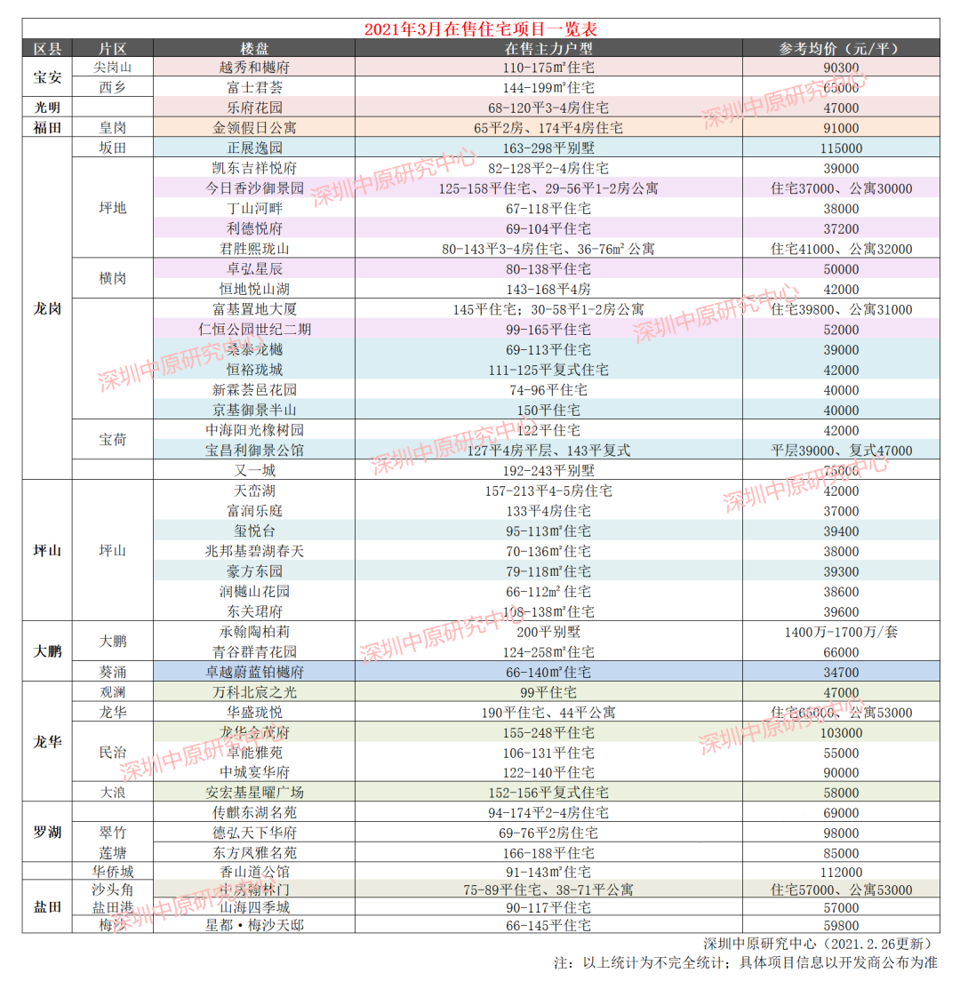 根据深圳中原研究中心监测,截止2月26日,深圳共有104个在售的新房项目,其中住宅项目只有44个(含3个别墅项目)。
