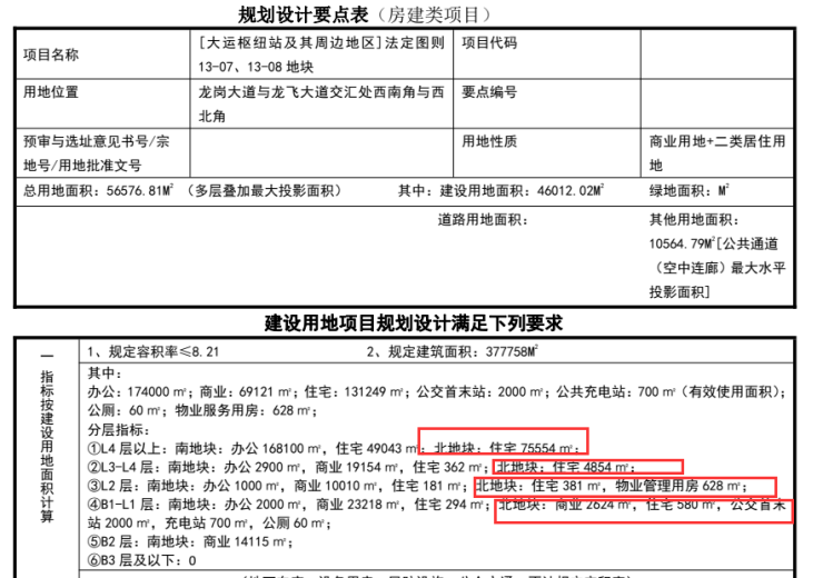 颐安集团负责开发13-05、13-06地块(西侧地块),总建筑面积为286,737平方米,主要功能为商务公寓、商业和住宅;深圳地铁集团负责开发13-07、13-08地块(东侧地块),总建筑面积为377758平方米,主要功能为商务办公、商业、住宅、保障房等。