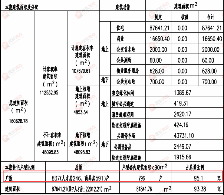 本期地块个住宅总建面约8.76万㎡,配建商业约1.67万㎡,共规划837套房源(商品房591套、人才房246套)。