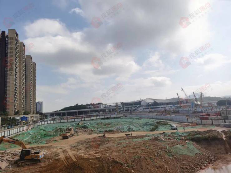 目前深铁阅云境广场(北地块)目前正在坑基作业,南地块处于围合状态,其中住宅地块部分在前提打桩状态,办公地块没有明显动工迹象。