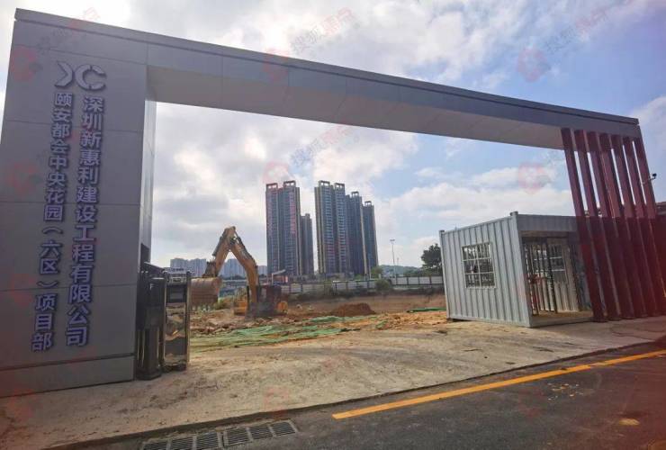 在颐安都会中央四期一路之隔,是颐安都会中央六期地块,目前应该在平整土地阶段,施工大门已建成。