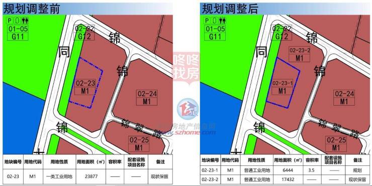 拟将G02406-0006号宗地对应的[宝龙东地区]法定图则02-23地块划分为两个地块;02-23-1地块用地性质规划为普通工业用地(M1),用地面积6444平方米,容积率由1.8提高到3.5,备注为“规划”;02-23-2地块用地性质为普通工业用地(M1),用地面积17432平方米,备注为“现状保留”。
