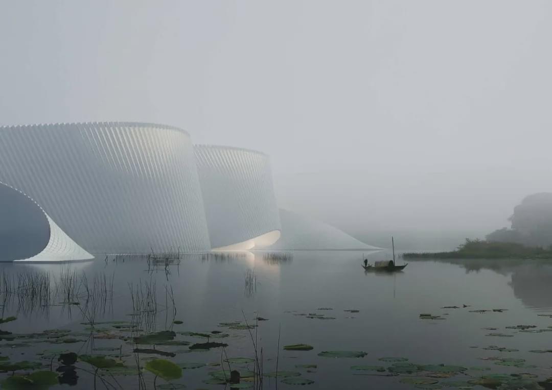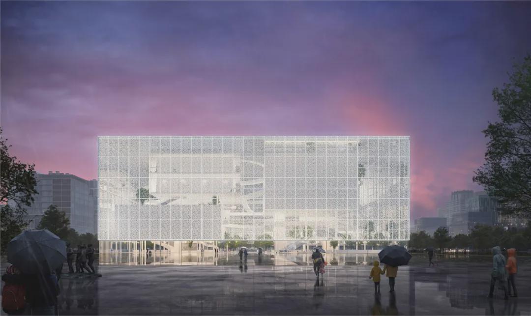 建筑造型兼具灵动性和冲击力;布局上将展演空间和音乐聚落空间结合设置,从而创造出全天充满活力、属于市民的公共活动空间;光线通过创新的水波纹玻璃板折射至室内,营造造出梦幻的光影效果。