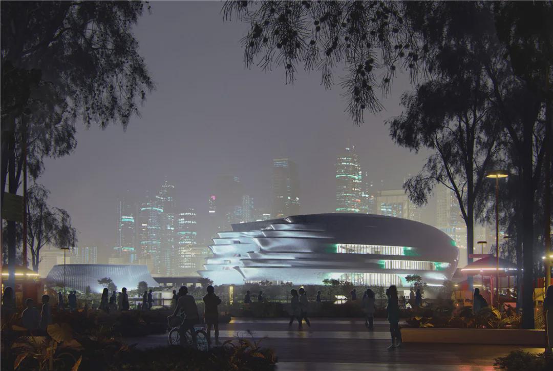 3、充满张力的结构造型及整体设计有助于增强湾区与滨水区的环境营造,与城市产生紧密的开放、互动关系。