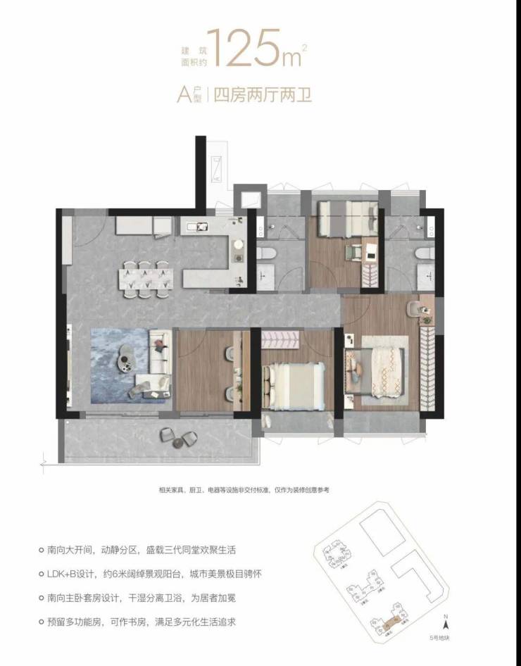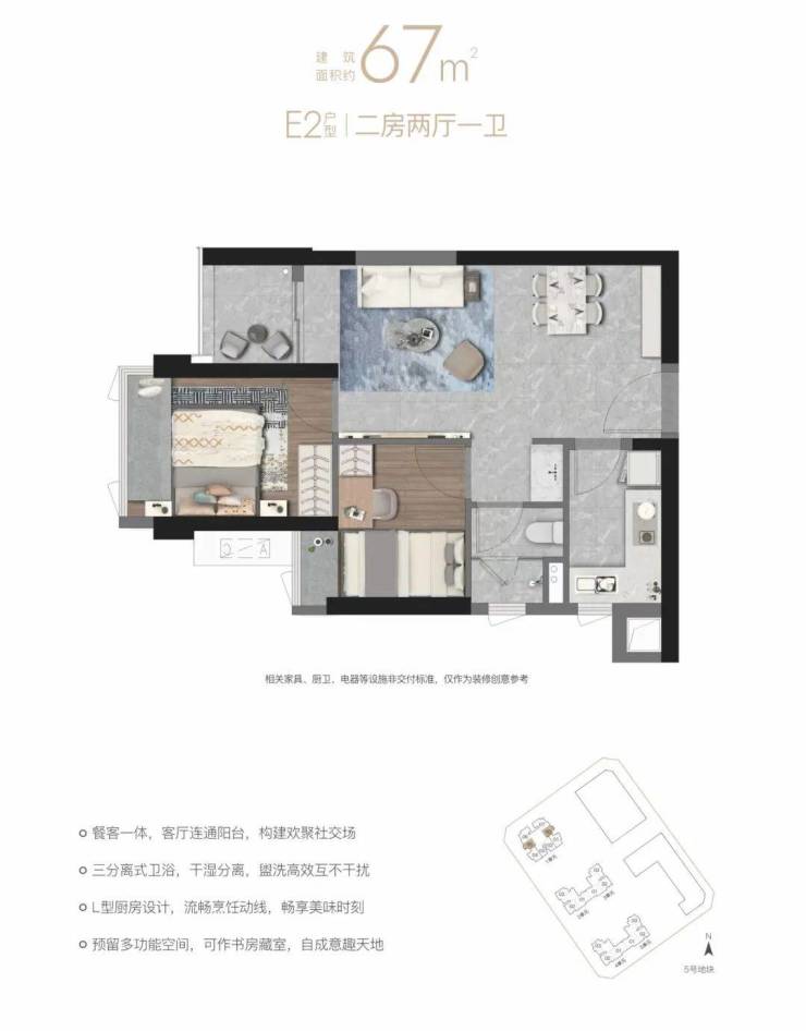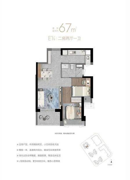 项目可售的商品房住宅房源共1382套,户型为建面约67-87-96-117-125㎡的2-4房,其中,建面约67㎡的2房是片区内较为稀缺的小面积段上车户型。