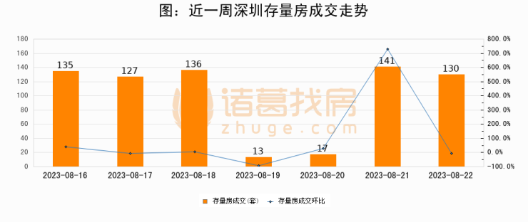 从存量房来看,2023年08月22日深圳存量房单日成交130套,比昨日减少11套,环比下降7.8%。从近一周存量房成交来看,深圳存量房日均成交套数为99套,08月22日单日成交130套,高于近一周平均水平31.3%。