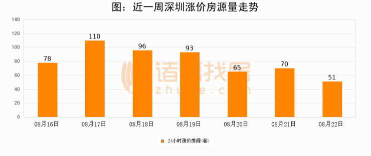 根据诸葛找房数据显示,深圳24小时涨价房源量为51套,较08月21日减少19套,环比下降27.1%。与此同时,涨价房源占比小幅回落,对于购房者来说是一个入市窗口期,购房者可抓住时机入市。