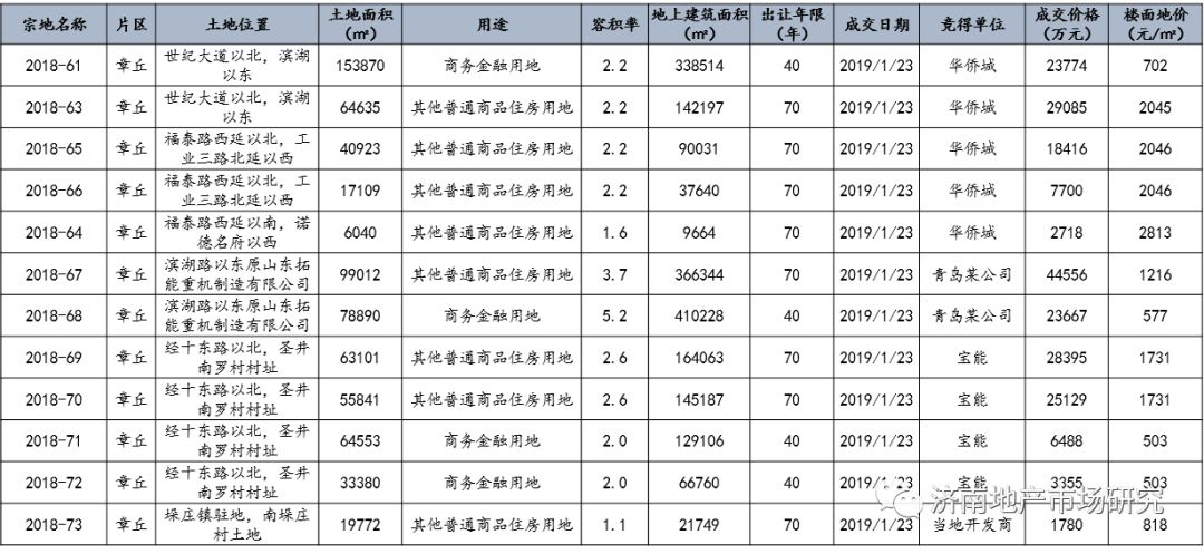 章丘12宗地底价成交,楼面地价回归理性,宝能城落地,华侨城二期摘地。