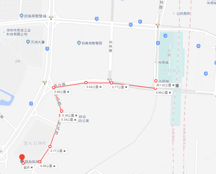 根据地图测距,未来特发观月台北部道路建成后,从项目出发抵达光明城站约1公里,具体以实际出行为准。
