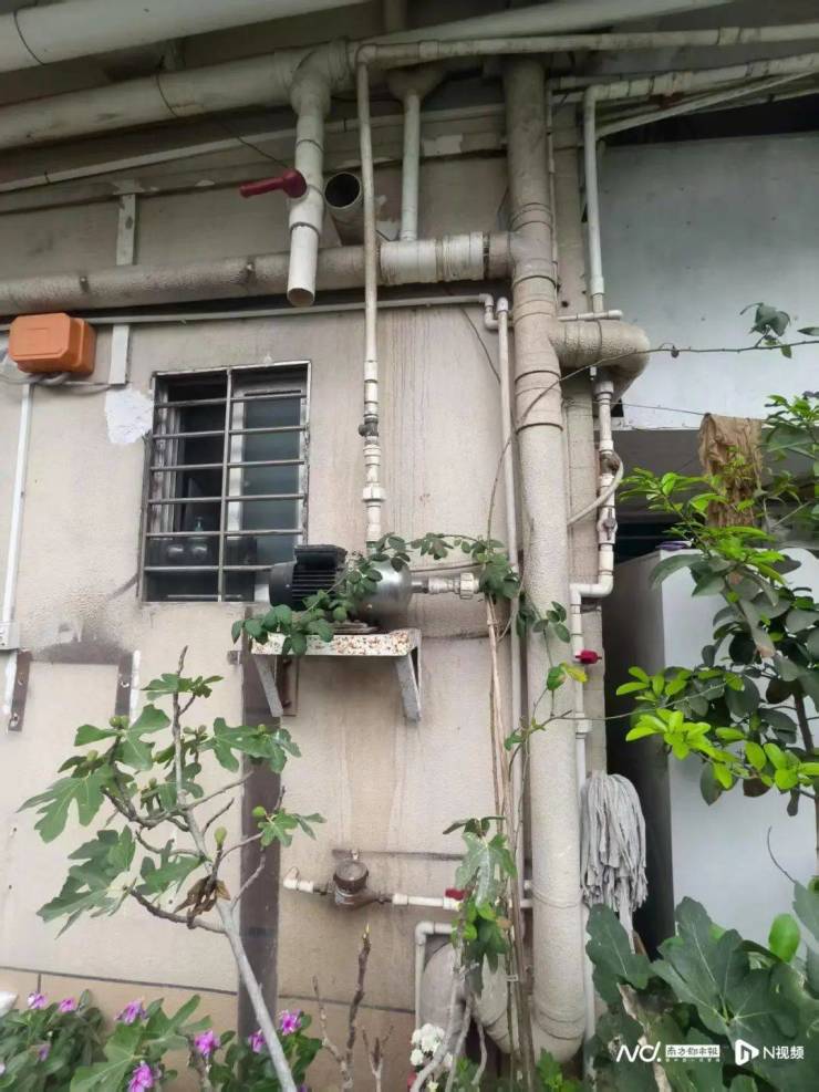 奥一新闻记者在宝山新村二区走访时发现,部分楼栋抽水泵连接两条水管,一条水管向上,另一条水管连接两个方向的水管。其中,两个方向水管分别配备开关。