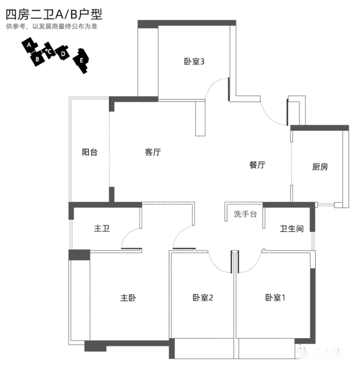 但我们比对了各个版本的户型格局,发现基本是一致的,这里可以给大家做个参考,具体还是以官宣为准。
