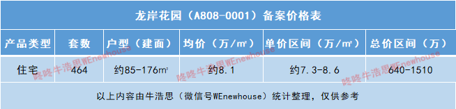 龙华新盘龙岸君粼推出464套住宅 备案均价约8.1万/㎡