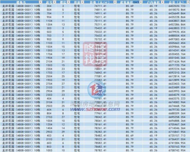 金光华龙岸君粼备案名龙岸花园,位于龙华区民治街道,现已获批预售,预售总房源464套,预售总面积55934.04㎡,位于7栋、8栋、9栋、10栋。