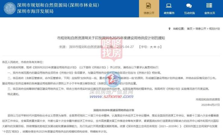 近日,深圳市规划和自然资源局印发了《深圳市2025年度建设用地供应计划的通知》。