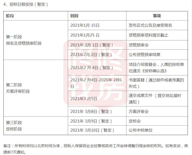 1月15日,后海中心区G-08地块(暂定名)建筑方案设计公开招标,1月25日截止报名。