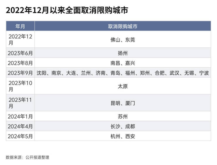 4月,长沙,成都全面取消限购;5月杭州、西安全面取消限购。