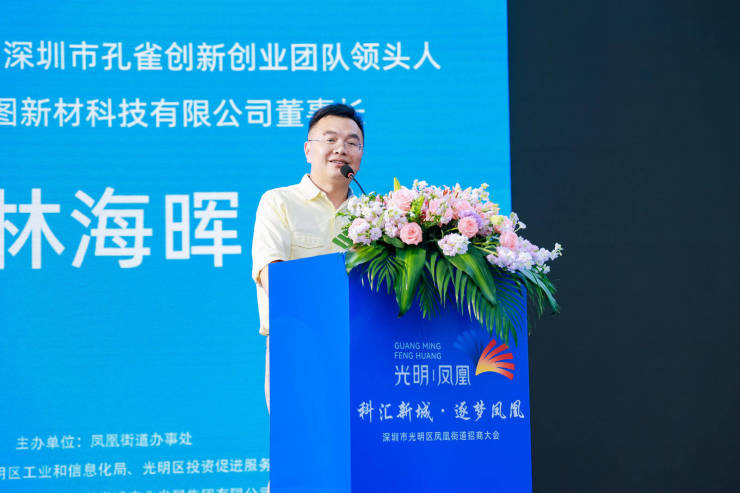绚图新材科技有限公司董事长林海晖分享了从凤凰街道成长起来的创业感受。作为国家特聘专家、孔雀团队领头人、国际知名材料学专家,林海晖2014年辞去国外高薪工作,回深圳创业。从凤凰街道留学生创业园起步,他的公司团队从8人壮大至近百人,频结科研硕果,还孵化了多个孔雀创新团队和科技企业。他强调,从来不后悔选择深圳,选择光明,选择凤凰的留创园迈开自己创业第一步。“深圳塑造了我后半场人生。”