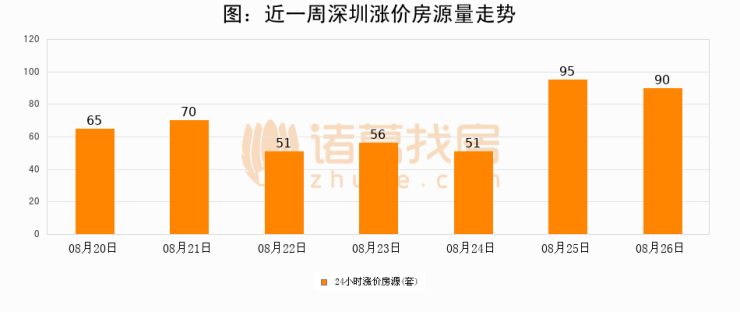 根据诸葛找房数据显示,深圳24小时涨价房源量为90套,较08月25日减少5套,环比下降5.3%。与此同时,涨价房源占比小幅回落,对于购房者来说是一个入市窗口期,购房者可抓住时机入市。