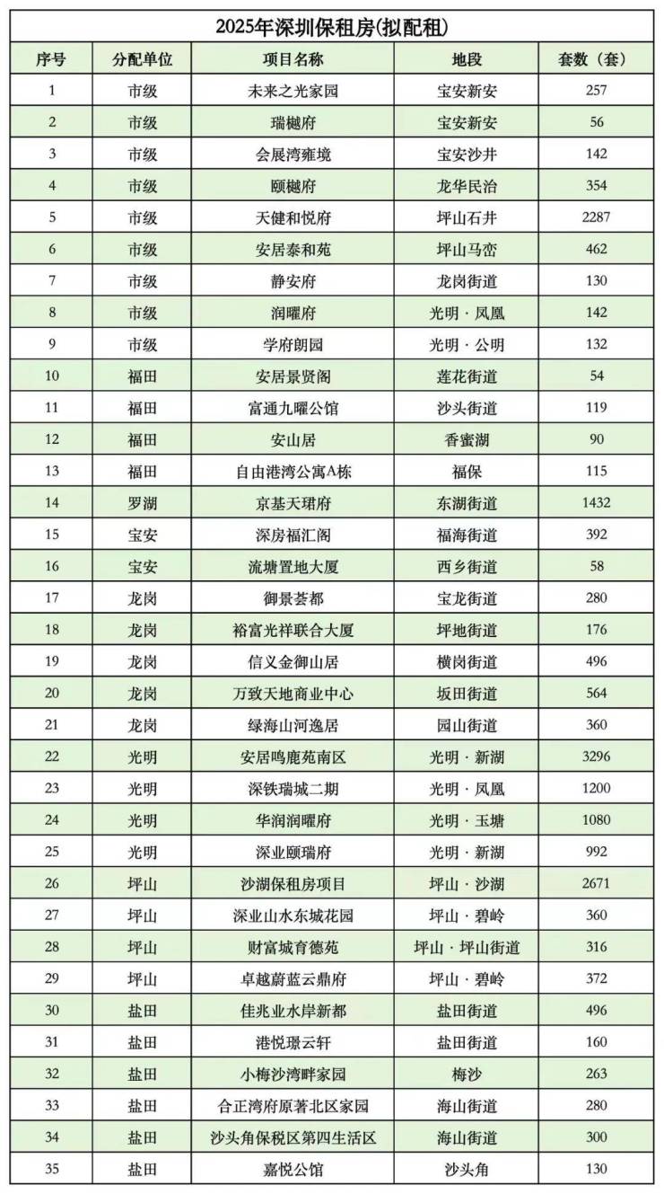 接下来,深圳将迎来保租房的海量供应。据网传,2025年将有35个政府配租项目待推出,总房源量约20797套。(具体以官方具体配租公告为准)